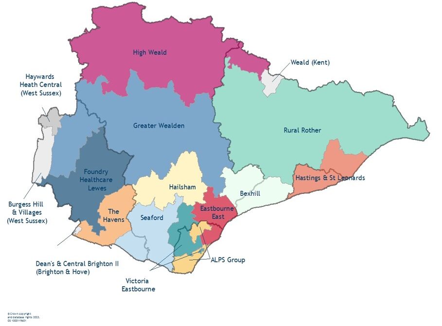 Map 4 Primary care networks in East Sussex, 2023